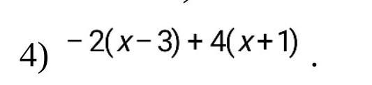 - 2x(x - 3) + 4(x + 1) = \\  =   - 2x \times x  + ( - 2x) \times ( - 3) + 4 \times x + 4 \times 1 =  \\  =  - 2x {}^{2}  + 6x  + 4x + 4 =  \\  =  - 2x {}^{2}  + 10x + 4