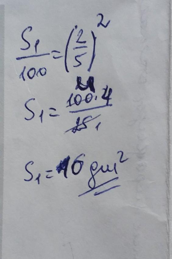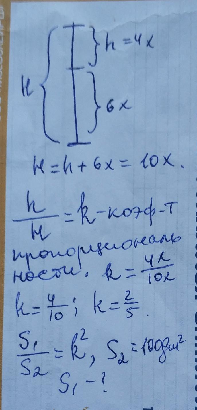 Сечение, которое проведено параллельно основанию шестиугольной пирамиды, делит высоту пирамиды в отношении 4 : 6, считая от вершины. Вычисли площадь сечения, если площадь основания равна 100 дм2.