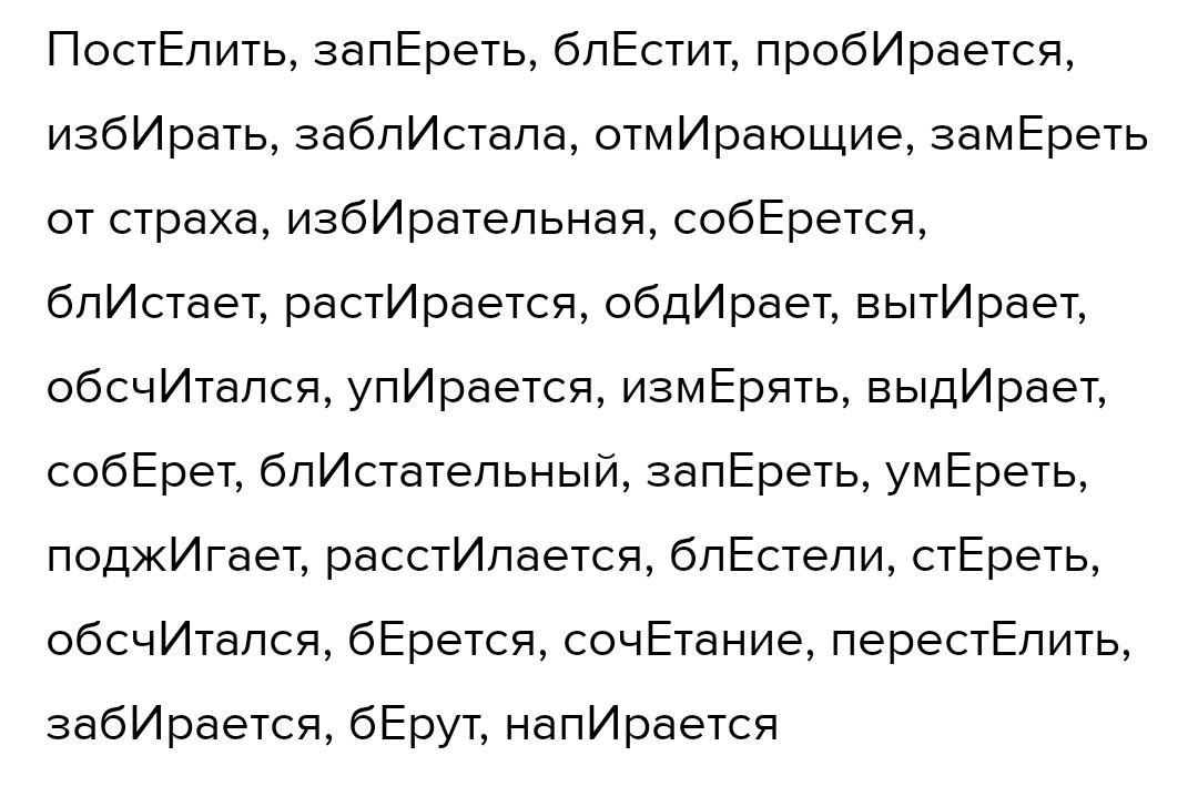 Нап_рать, расст_лить, расст_лать, бл_стеть, прод_раешься, пост_ лешь,