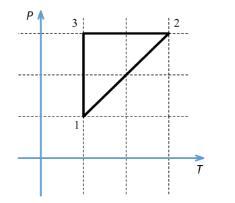 Учитывая, что температура газа в точке 1 равна 100 °K, а температура в точке 2 — 300 °К, определите работу над газом на участке 2–3.