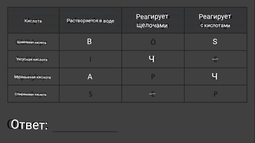 Сделайте выводы о свойствах карбоновых кислот. Буквы, соответствующие правильным ответам, образуют название дурно пахнущей кислоты.