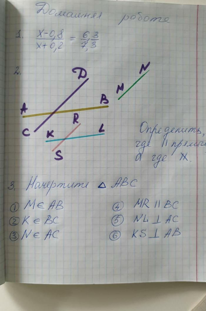 2. Определить, где параллельные прямые, а где не параллельные прямые.