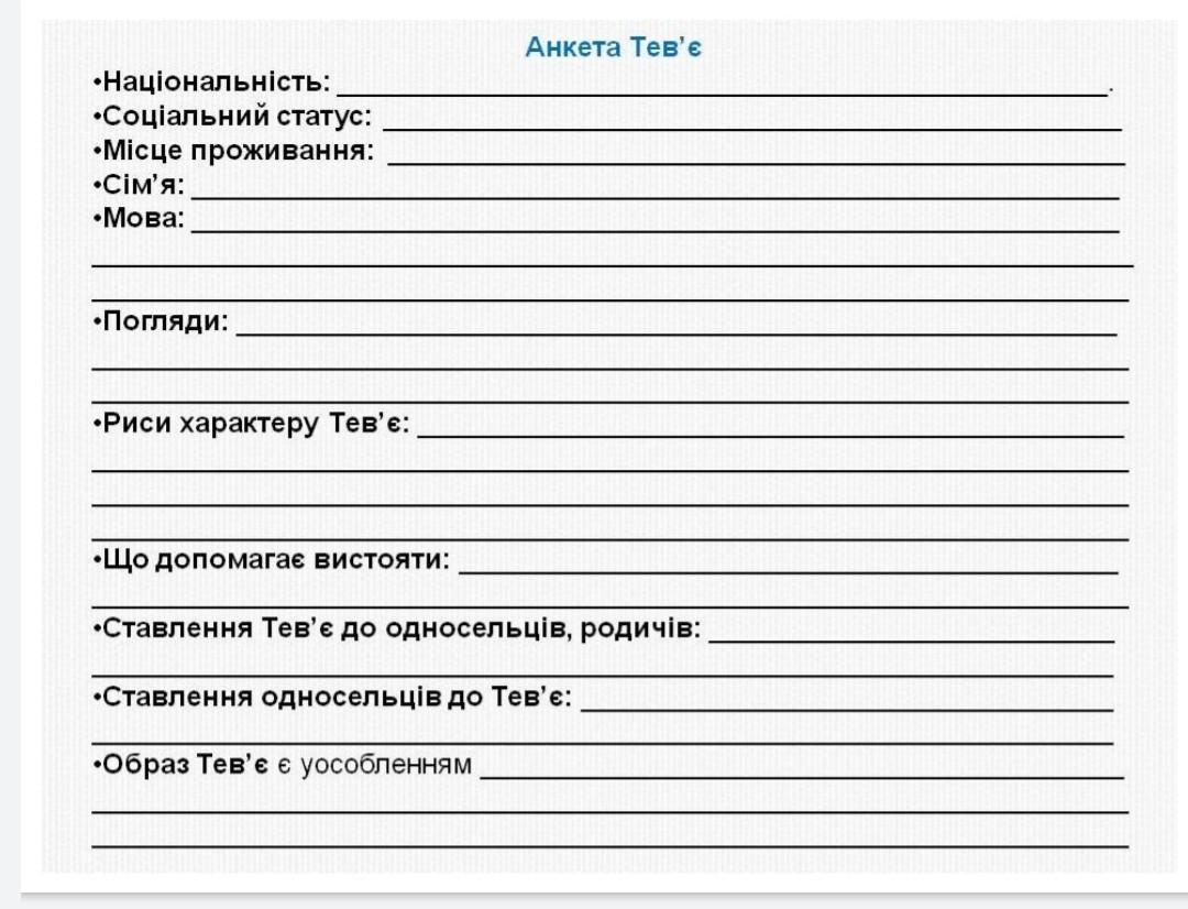 Допоможіть будь-ласка заповнити анкету Тев'є-молочара​