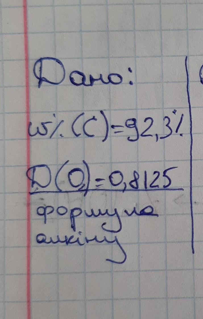 Визначити формулу алкіну, якщо відносна маса С = 92,3%, а відносна густина за киснем складає 0,8125.