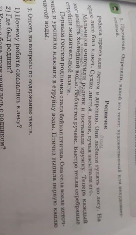 2) родник был на краю леса.