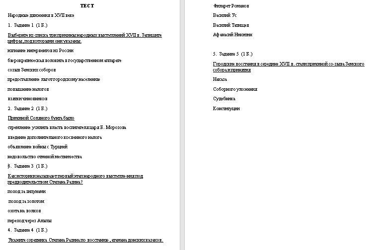 Выберите из списка три причины народных выступлений XVII в. Запишите цифры, под которыми они указаны.
