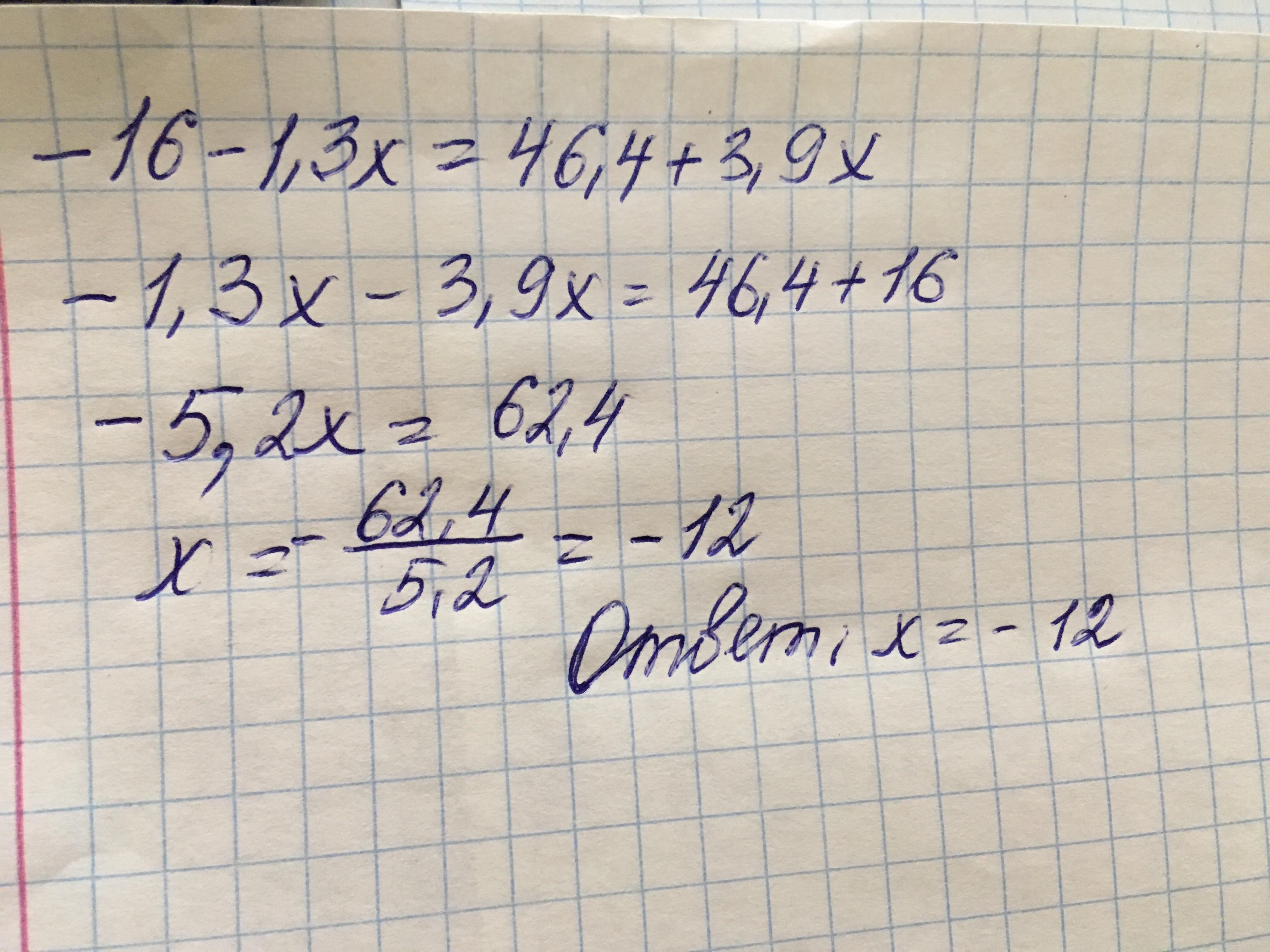 −16−1,3x=46,4+3,9x
