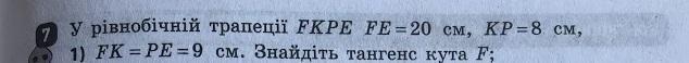 Дано FKPE-трапеция, FK=PE=9 см, KP=8 см , FE=20 см.