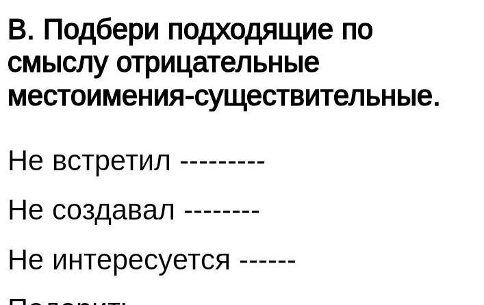 хелп ми)) подбери подходящие по смыслу отрицательное местоимение или существительное