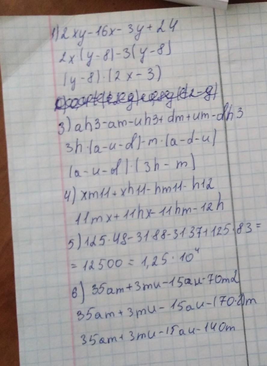 1. Разложи на множители 2xy−16x−3y+24.