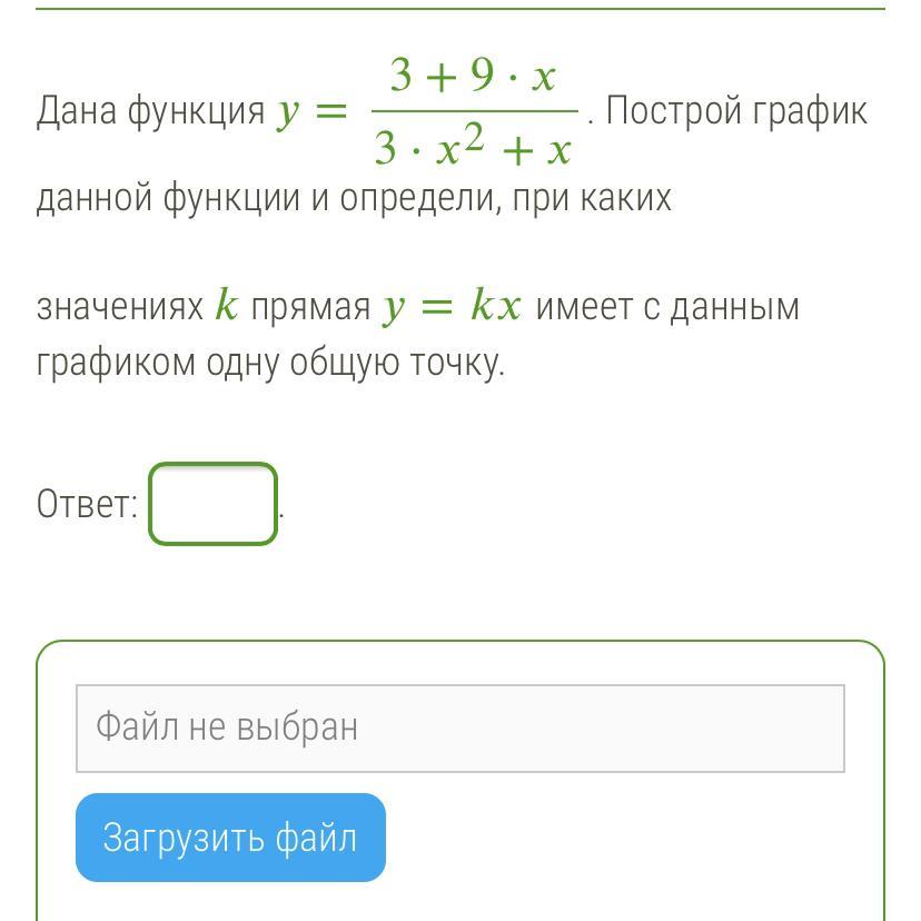 Дана функция у=3+9x/3*x^2+x. Постройте график данной функции и определите, при каких значениях k прямая у=kx имеет с данным графиком одну общую точку.
