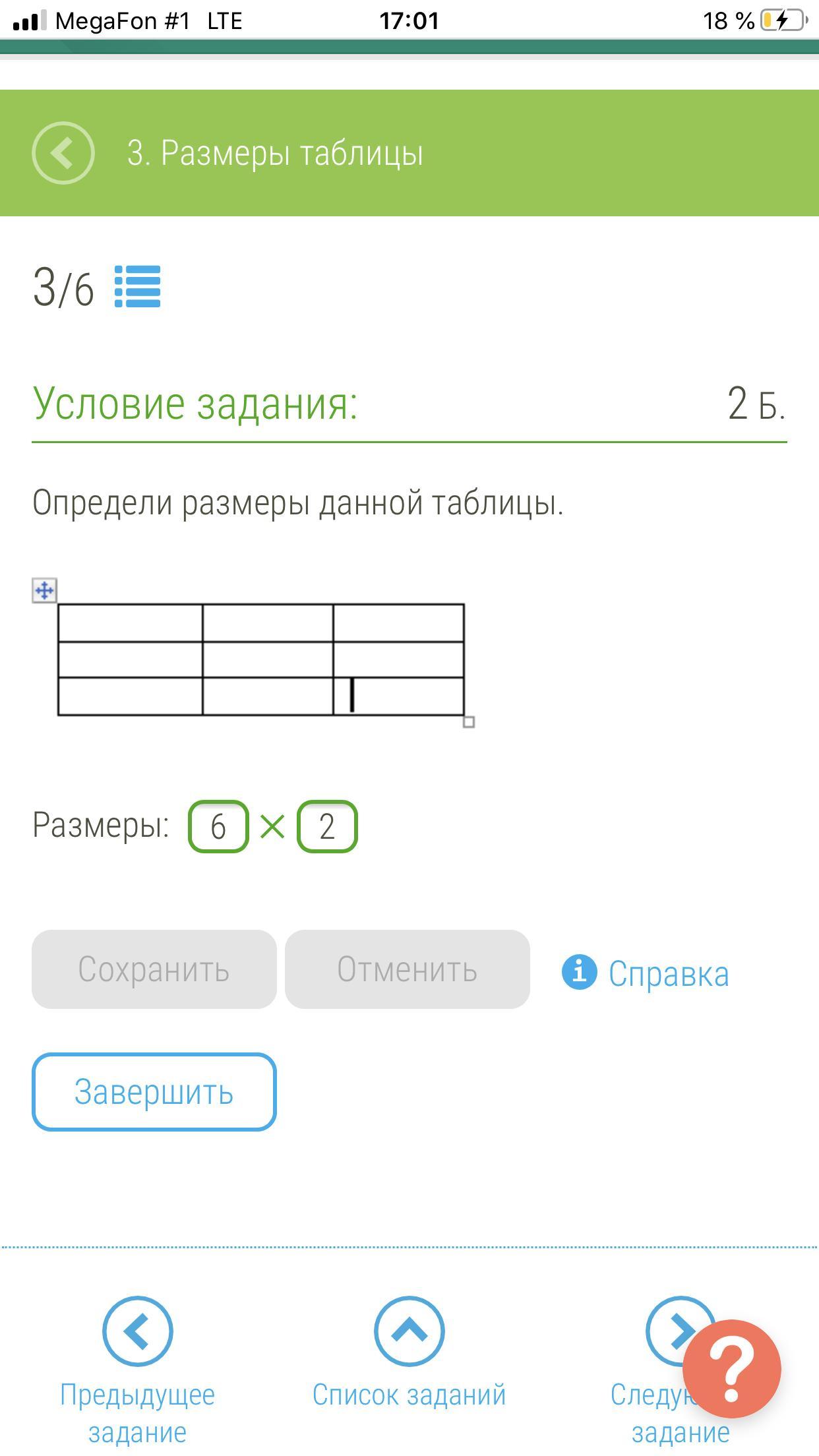 Размер таблицы 3 на 3.
