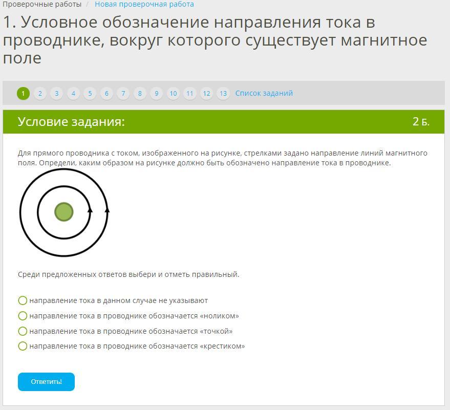 Условное обозначение направления тока в проводнике, вокруг которого существует магнитное поле