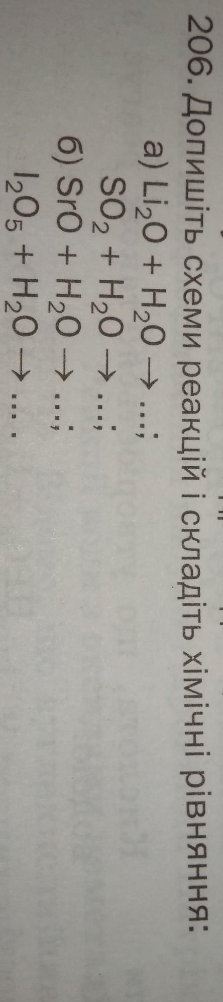 206. Допишіть схеми реакцій і складіть хімічні рівняння: