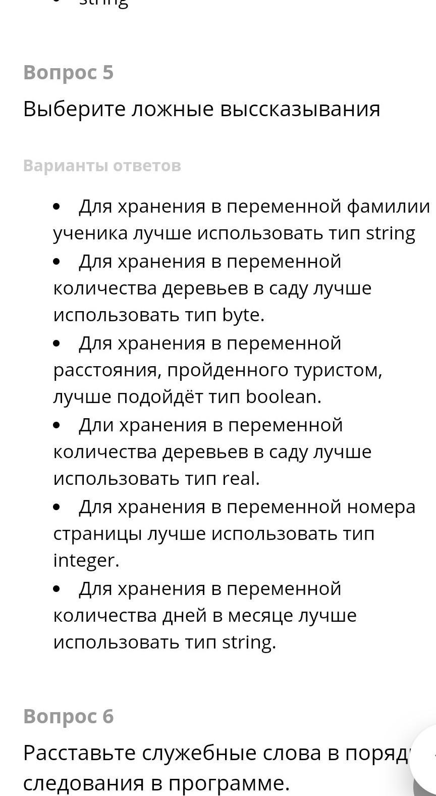 Ложное - Для хранения в переменной растояния пройденой туристом, лучше подойдет boolean