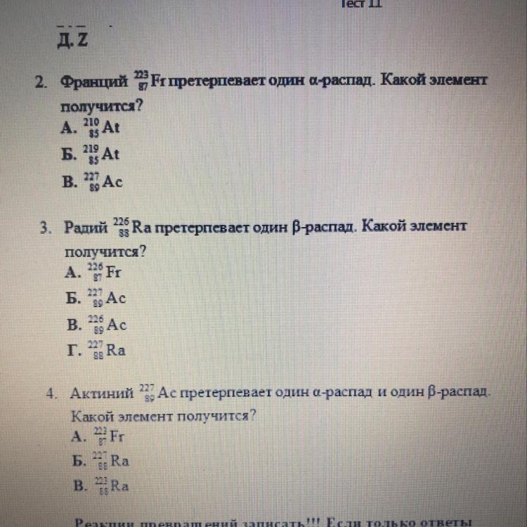 Тест радиоактивные превращения . Ответ С реакциями превращения!