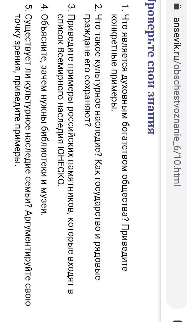 5)культурное наследие - это что то что создано предыдущими поколением ( родителями, дедуками, бабушками ) и передается ка к что то ценное и почитаемое. к культурному наследию семьи можно отнести разные вещи - икону которая передается по наследству - как благославление , или украшение - кольцо, ожерелье которое носила мама бабушка, прабабушка. может оно не очень ценно с ювелирной точки зрения, но как память оно не имеет цены.или портрет какого нибудь древнекго родича., основателья рода.или фото дедушки который погиб на войне.в каждой семье культурное наследие разное, но оно обязательно есть.