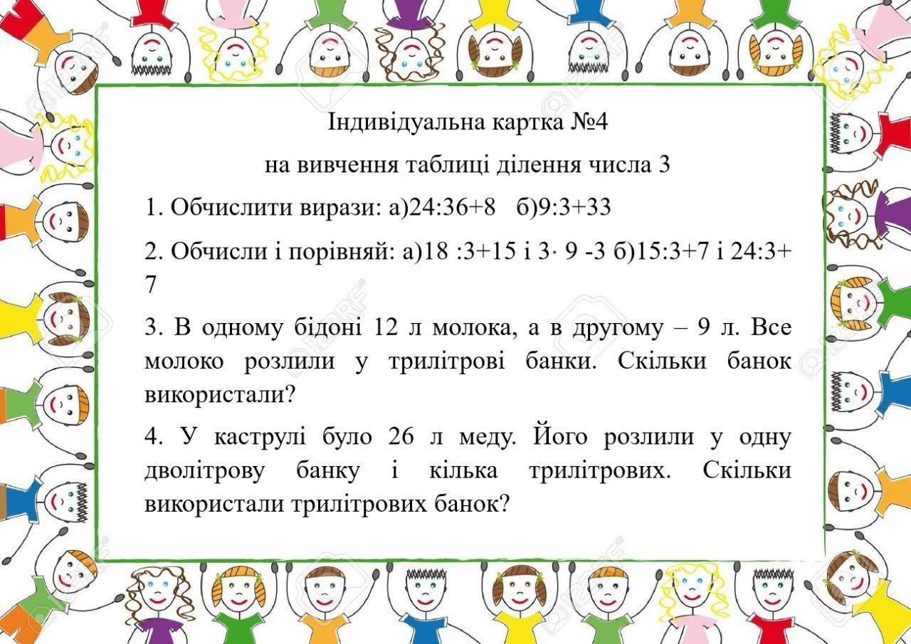 4 задание . 1) 26-2=24 (л) меду розлили у трьохлітрові банки; 2)24:3 = 8 (банок) це означає, що використали 8 трохлітрових банок