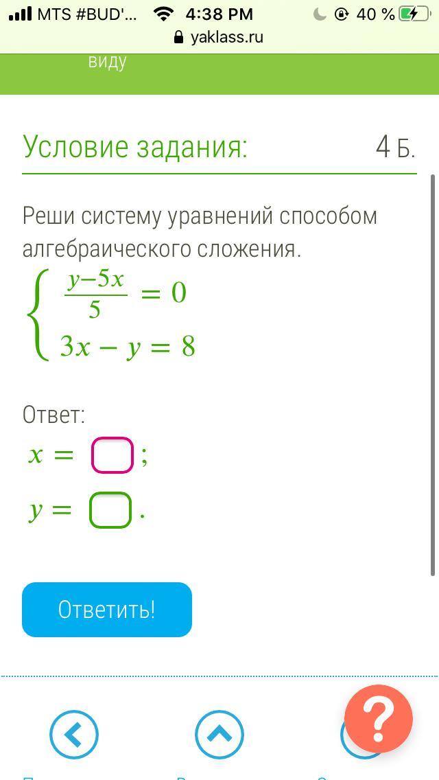 1) x=-4 y=-20; 2) x=1/5 y=-2/5