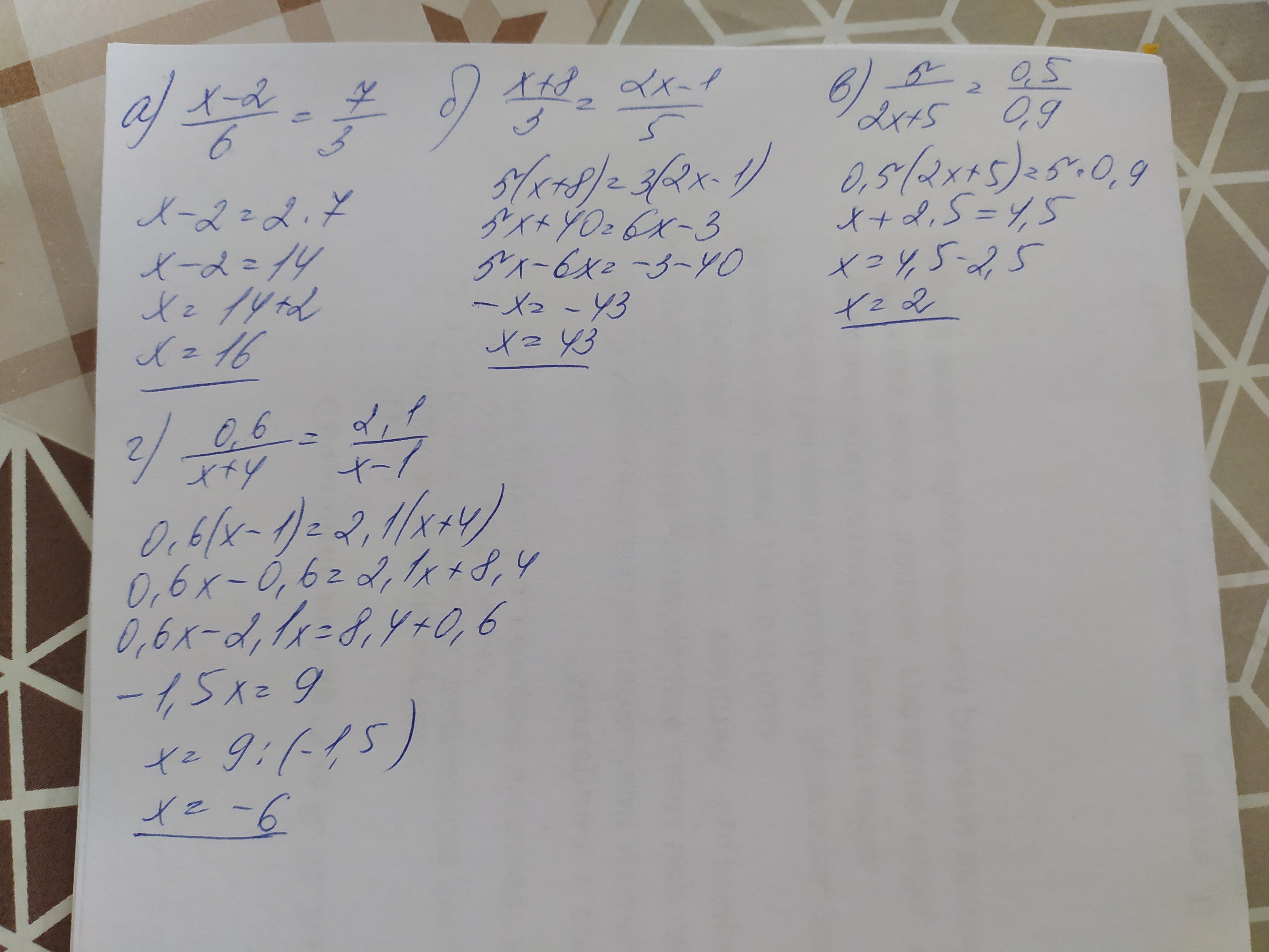г) 0.6/x+4=2.1/x-1
