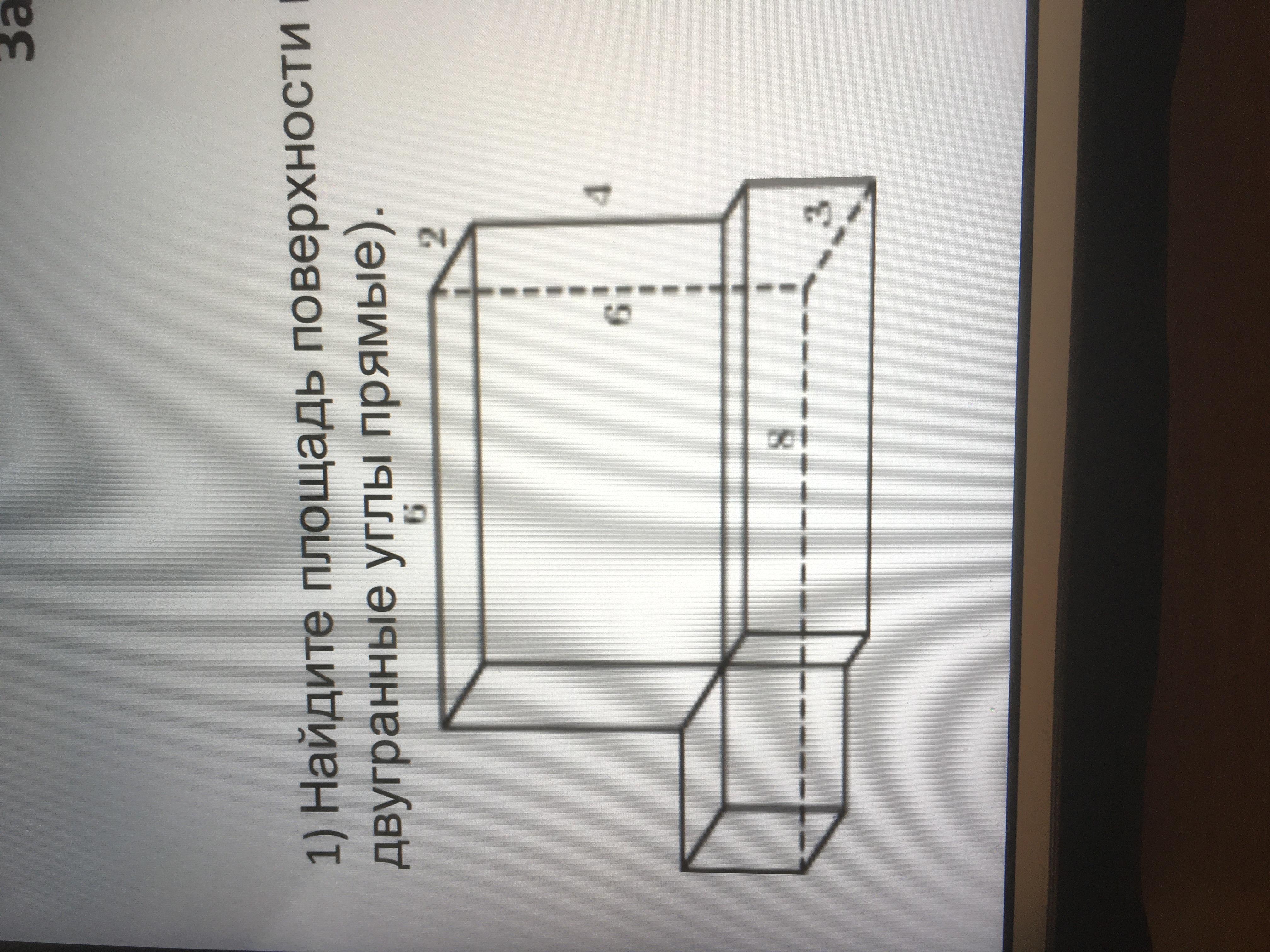 Найдите площадь поверхности многогранника изображенного на рисунке все двугранные углы прямые. 6, 2, 4, 6, 8, 3