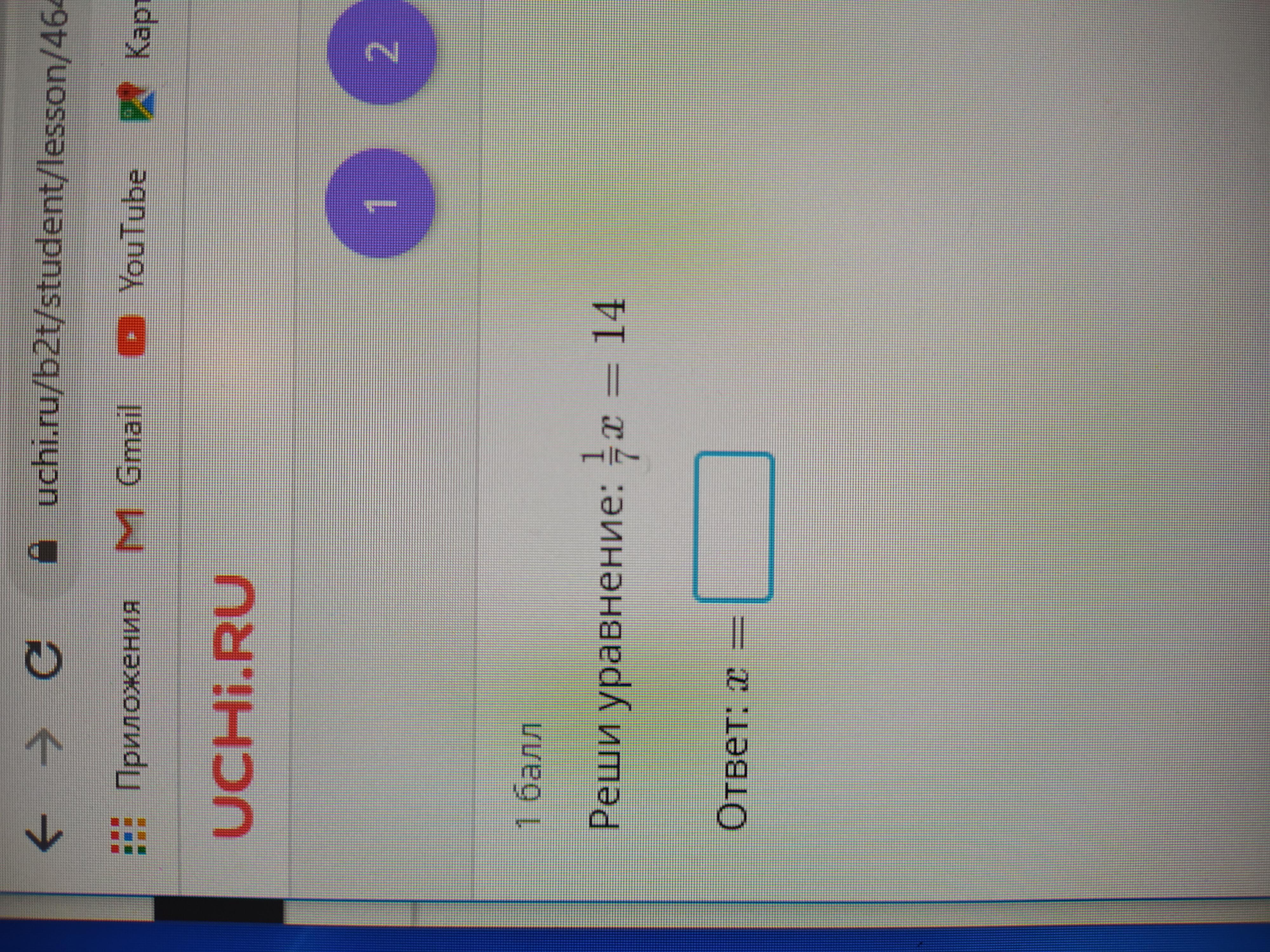 98 мы умножаем правую и левую часть на семь , в левой семёрки сокращаются и остаётся х , а в правой умножаем на 7 и получаем 98