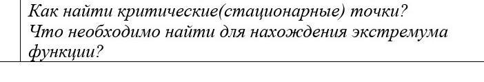 Найдите область определения производной ƒ'(x). Выпишите все точки, которые не попали в область определения функции ƒ'(x). Отберите из этого множества точек только те значения, которые принадлежат области определения D(x) функции ƒ(x). Это и будут критические точки функции ƒ(x).