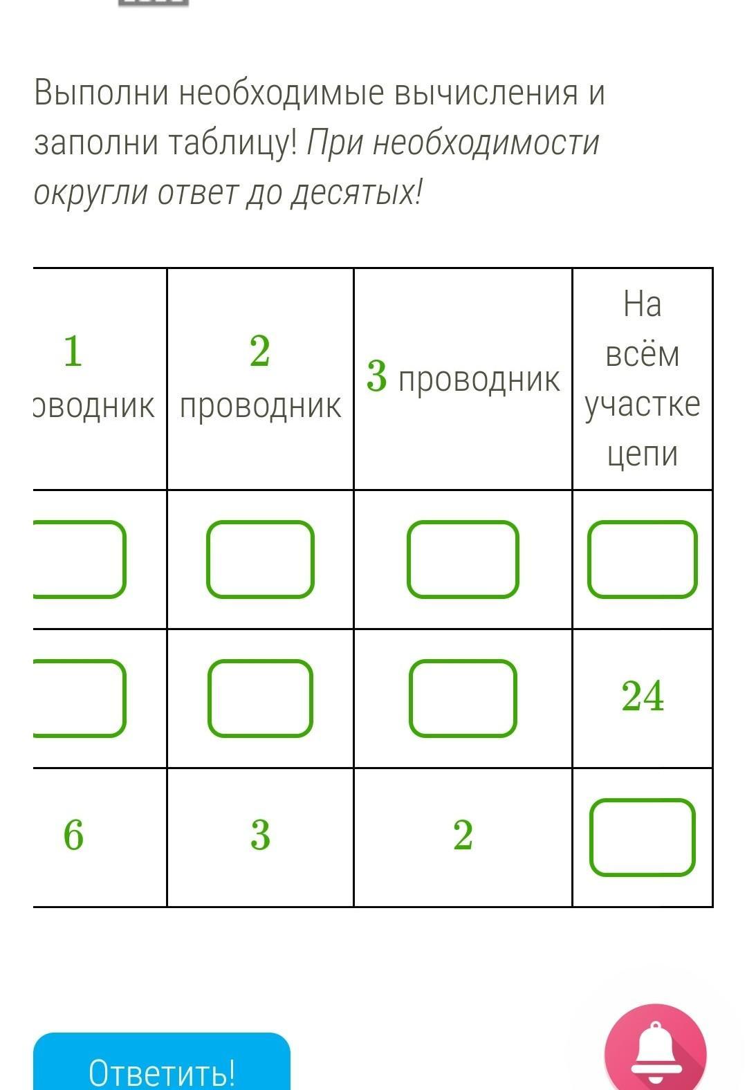 Выполни необходимые вычисления и заполни таблицу! При необходимости округли ответ до десятых!