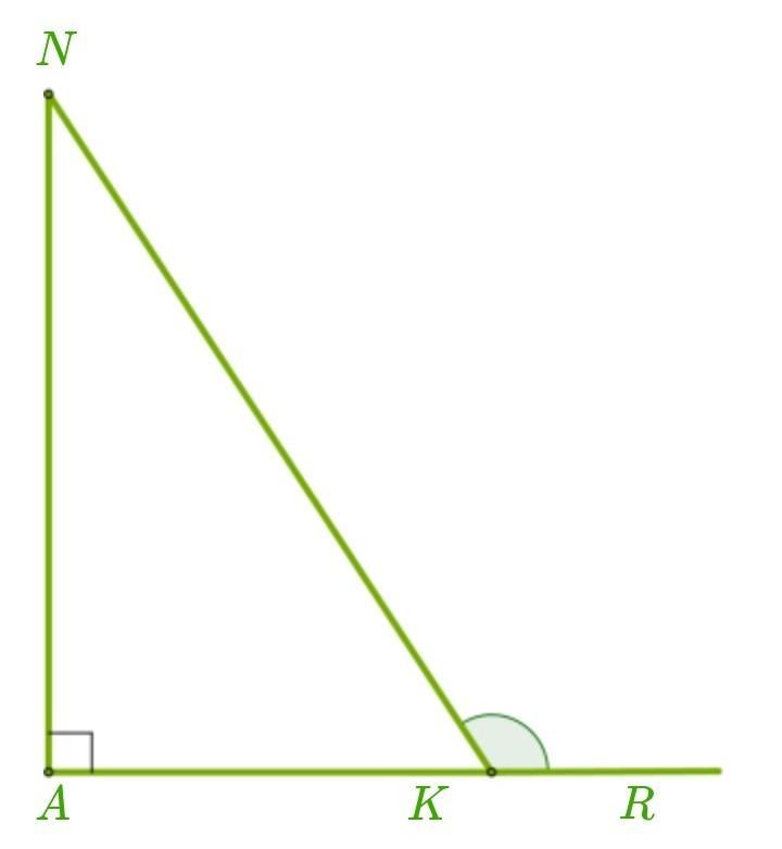 Дан прямоугольный треугольник ANK и внешний угол угла ∡ K.