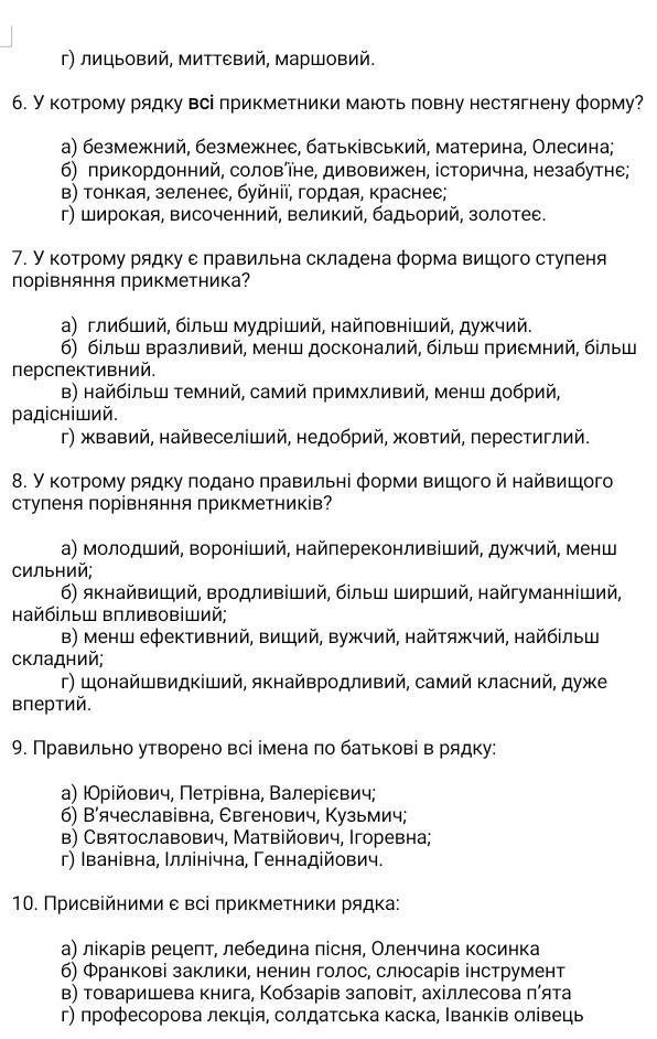 в 7 всі прикметники варіанту б) правильні, бо в інших є префікси най, та в варіанті в) слово "самий", як ми знаємо, в українській мові нема слова "самий"