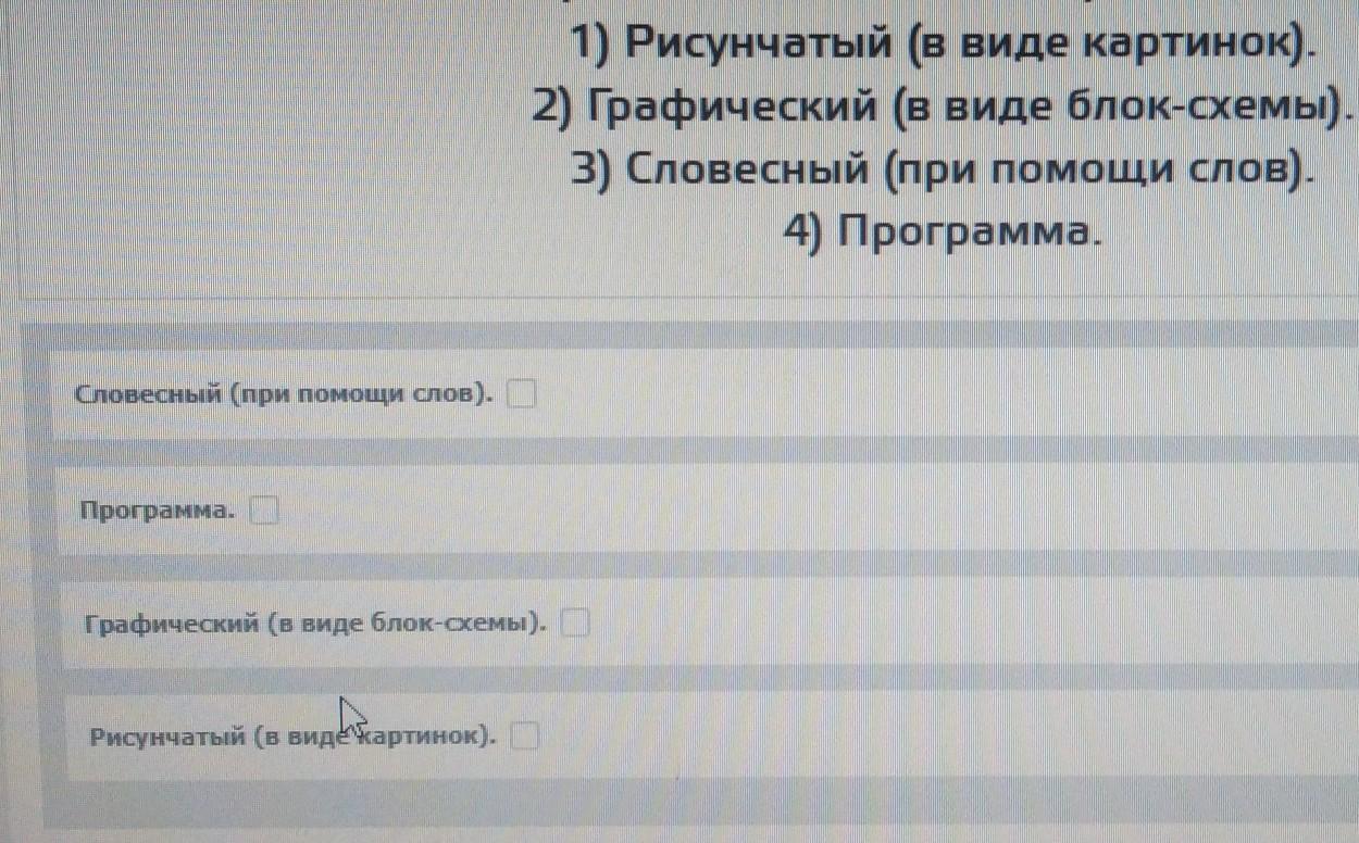 Какие способы записи алгоритмов вы знаете. Выберите несколько из 4 вариантов ответа: