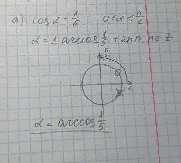 ну а арккосинус в ответе только потому что 1/5 не табличное значение и радианную меру угла по нему не найдешь