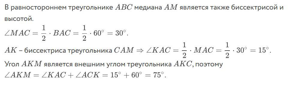 В равностороннем треугольнике АВС проведена медиана АМ.Отрезок АК является биссектрисой треугольника САМ