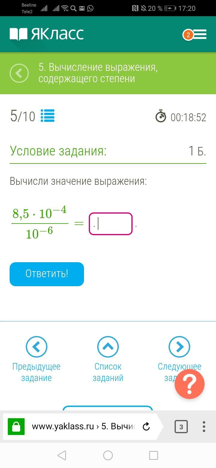 10^(-4) / 10^(-6) = 10^(-4 - (-6)) = 10^(-4 + 6) = 10^2 = 100