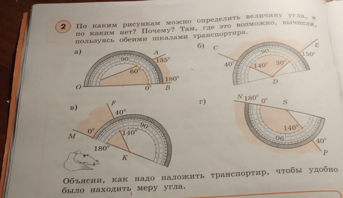 Ответ:измерить величину угла можно по рисункам В, Г, потому что на остальных рисунках угол неправильно приложен к транспортиру.