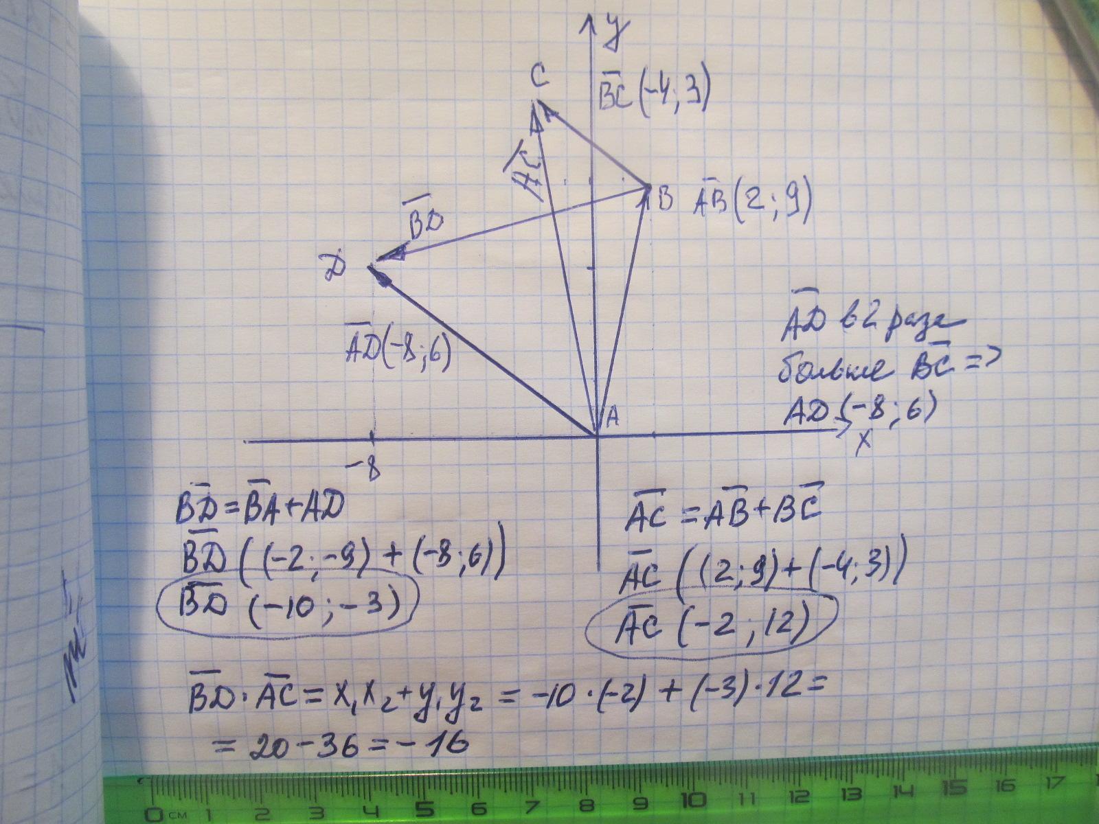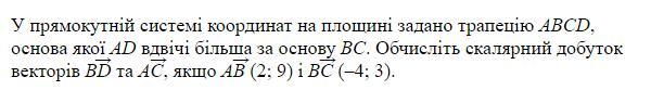 Т.к. основания параллельны, ВС(-4;3), то вектор АД(-8;6)