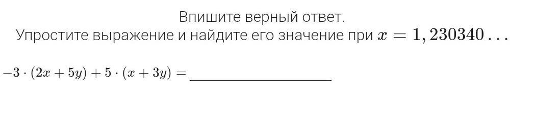 -3·(2x+5y)+5·(x+3y)= -6x-15y+5x+15y= -x= -1,230340