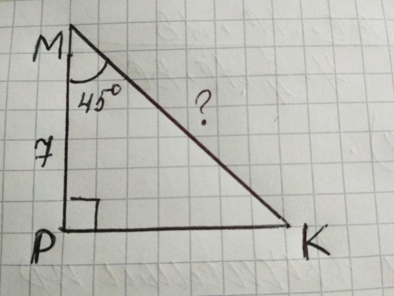 В ⊿МКР ∠Р = 90⁰, МР =7, ∠М = 45⁰.Найдите МК.