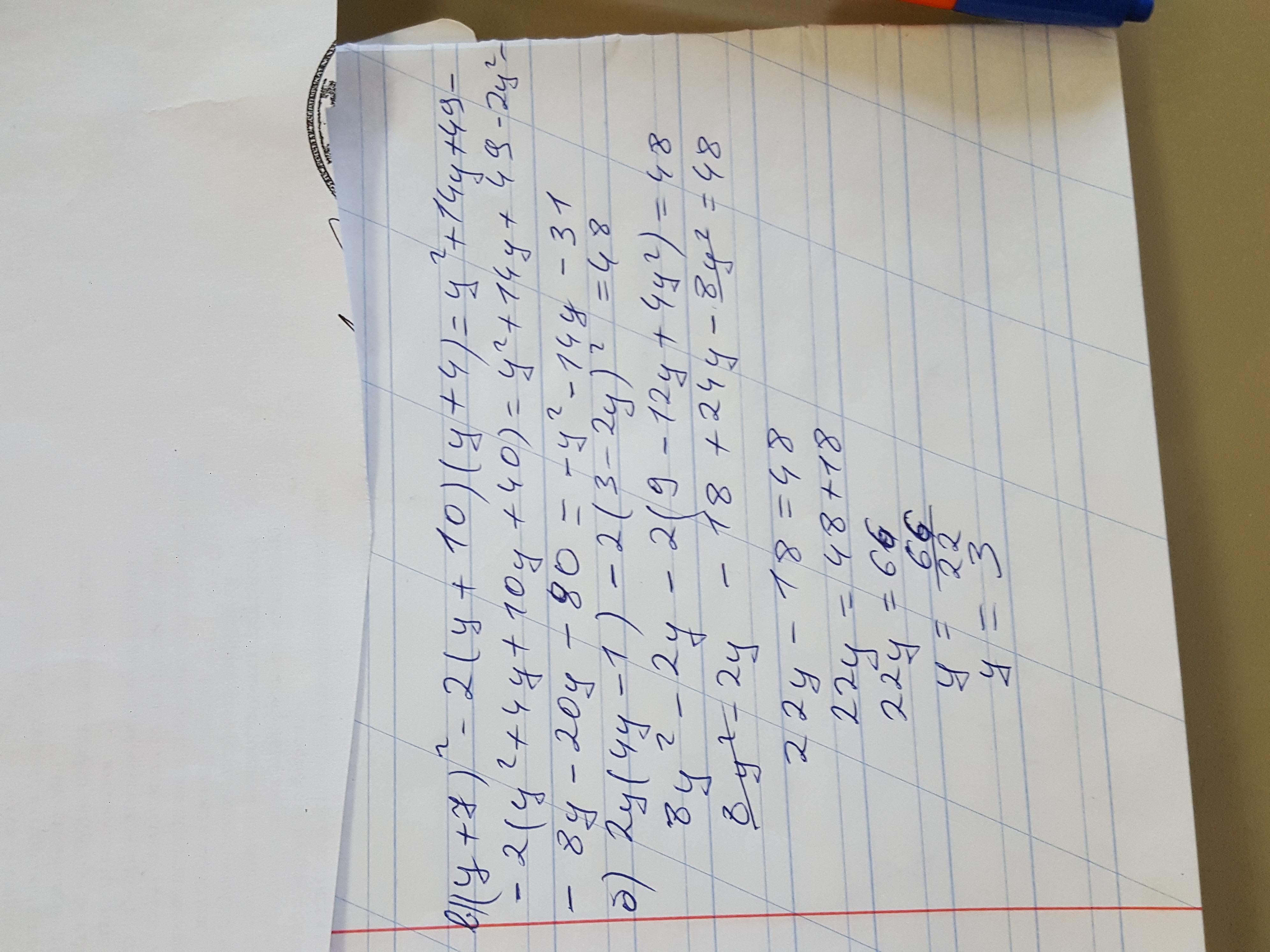 в) ( у + 7 )² - 2 ( у + 10 ) ( у + 4 ) =