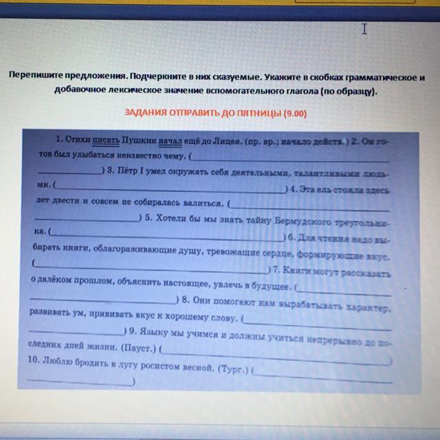 Писать начал (составное глагольное сказ.: начальная форма глагола писал - прош. время, начал - пр.вр., ед.ч., м.р.), готов был улыбаться (составное глагольное сказуемое нач.форма глагола улыбался - м.р. прош.вр.), умел окружать (составное глагольное сказ.прош.время, окружал себя: общался - м.р.. ед.ч, прош.в.), стояла (ж.р., прош.вр., ед.ч.), не собиралась валиться - состав.глаг.сказуемое: ж.р., ед.ч., пр.в., валиться - нач.ф. - смысл - не думала падать), хотели бы знать -сост.гл.сказ, мн.ч., прош.в., но желание знать в будущем, знать - н.ф.), надо выбирать (буд.вр., нач.ф.со значением умение разбираться), могут рассказать - состав.гл.сказ. могут-мн.ч., буд.вр., рассказать - н.ф. рассказывать), объяснить. увлечь (н.ф. объяснил, увлек - в будущем вр.), помогут вырабатывать - сос.гл.сказ буд.вр., мн.ч. вырабатывать - н.ф. вырабатывал (развить, укрепить, показать характер), развивать. прививать (н.ф. развивал, прививал, буд.вр.), учимся (мн.ч., наст.вр.), должны учиться (н.ф. учился, мн.ч.), люблю бродить (н.вр., ед.ч., н.ф. бродил)