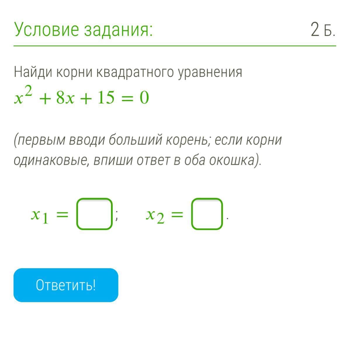 2. Реши квадратное уравнение 2х^2−14х+12=0.