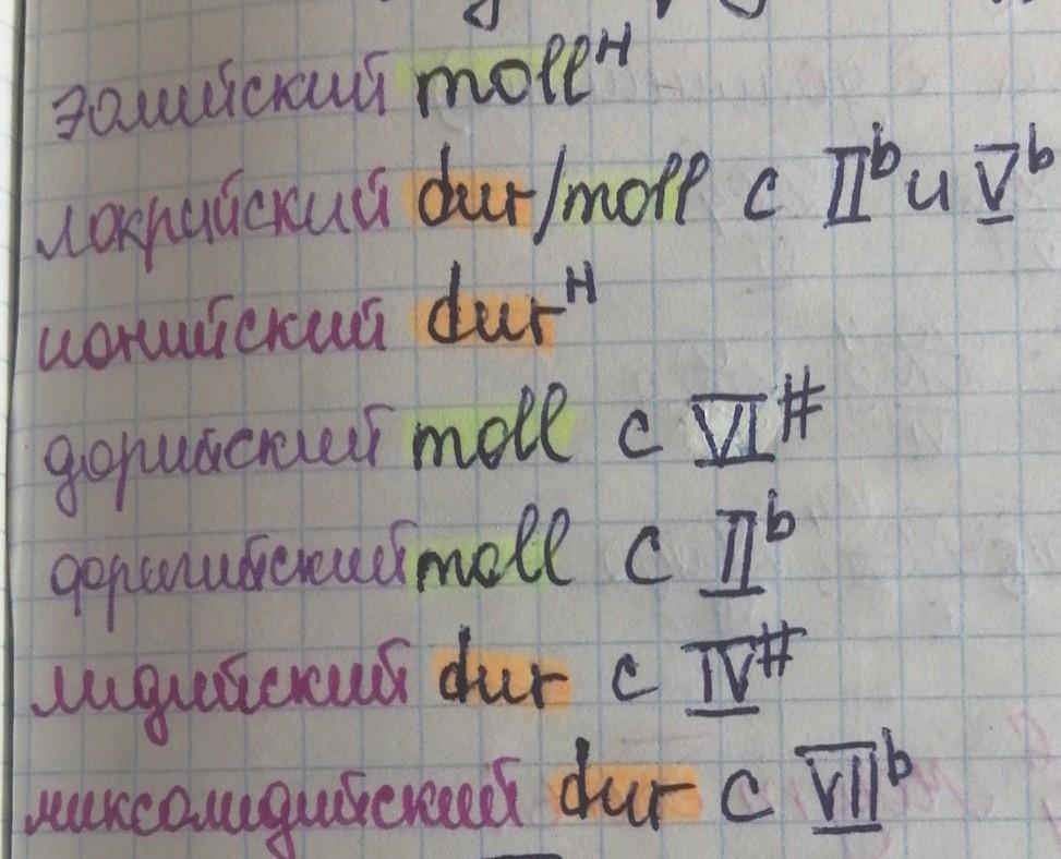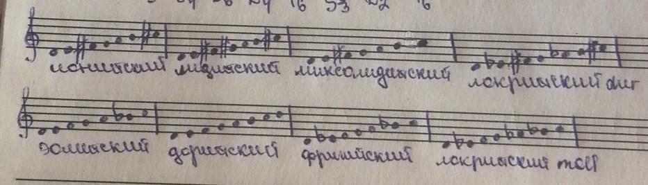 Нужно построить народные лады от ноты ре. Их должно быть 7(ионийский, лидийский, эолийский, фригийский, дорийский, локрийский миксолидийский)