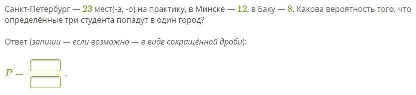 Санкт Петербург: 25/43*24/42*23/41=0,186