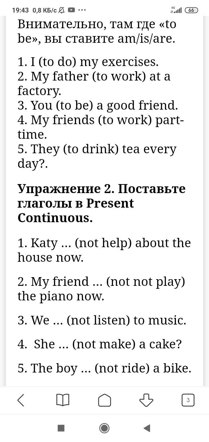 Упр 2: 1. is not helping, 2. is not playing, 3. are not listening, 4.is not making, 5. is not riding.