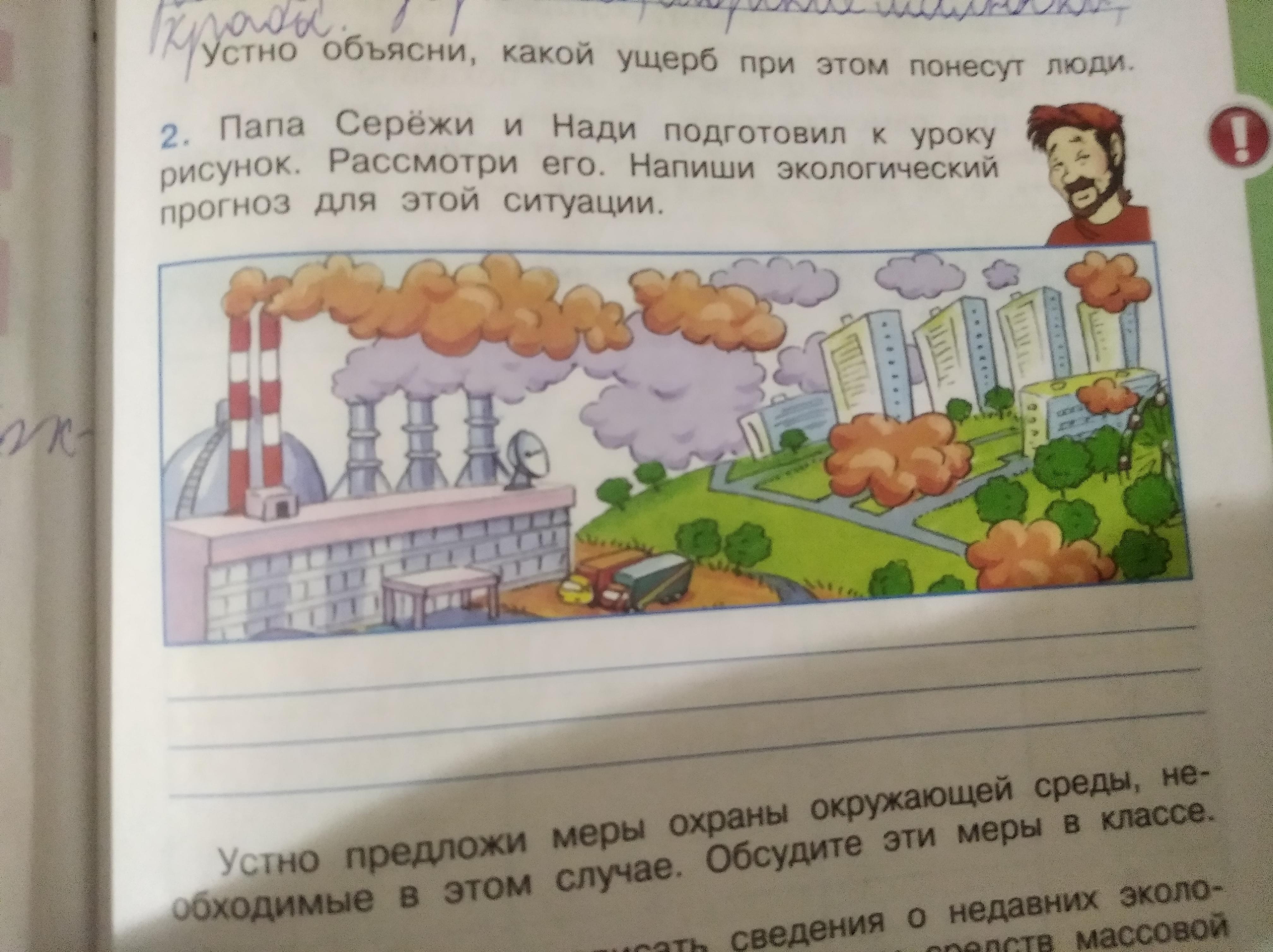Папа Серёжи и Нади подготовил к уроку рисунок рассмотри его напиши экологический прогноз для этой ситуации