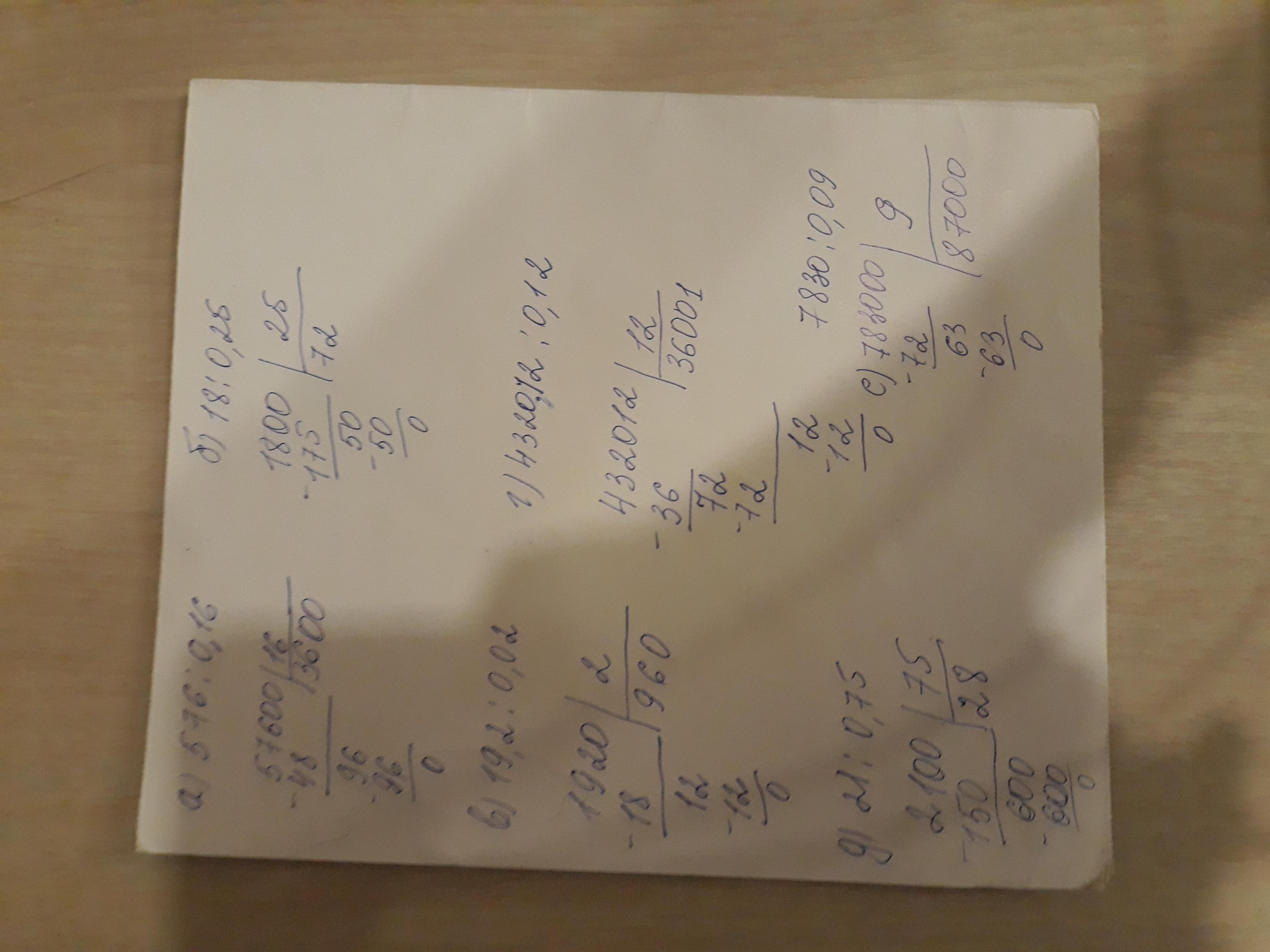 г) 4320,12 : 0,12; д) 21:0,75; е) 7830 : 0,09?