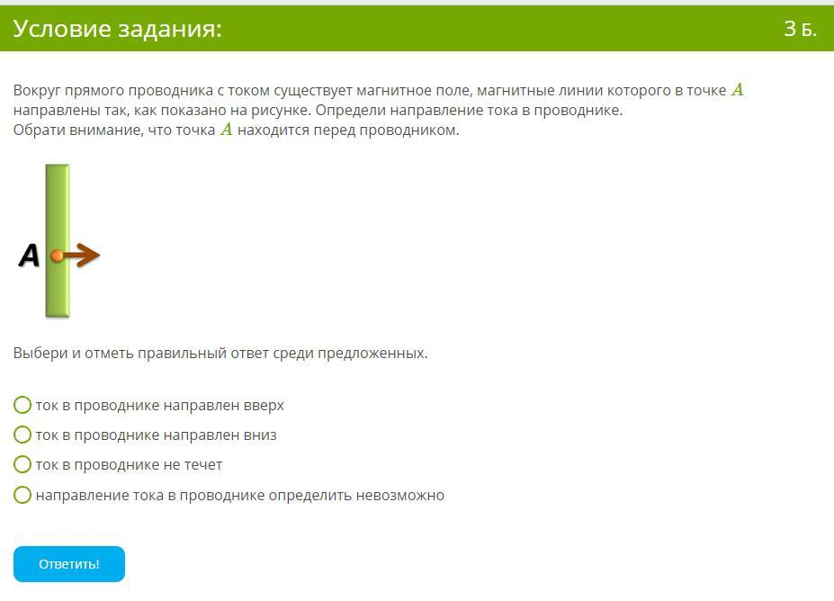 Мне кажется ток направлен вниз, по правилу правой руки ставим большой палец по направлению тока и смотрим направление пальцев