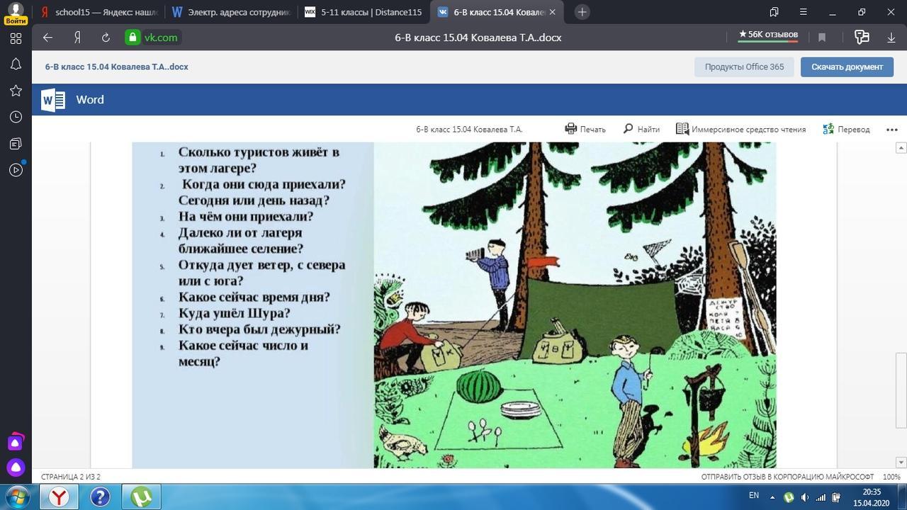 5. С юга (На палатке виден флажок, который указывает направление ветра. Если посмотреть на сосны, то с северной стороны у них ветки короче. Значит ветер дует с юга.)