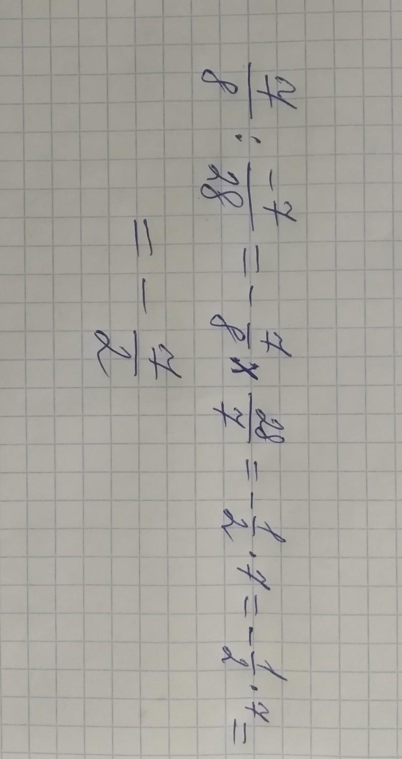 7/8÷(-7/28)= -7/8 • 28/7 = -1/2 •7= -1/2 •7 = -7/2