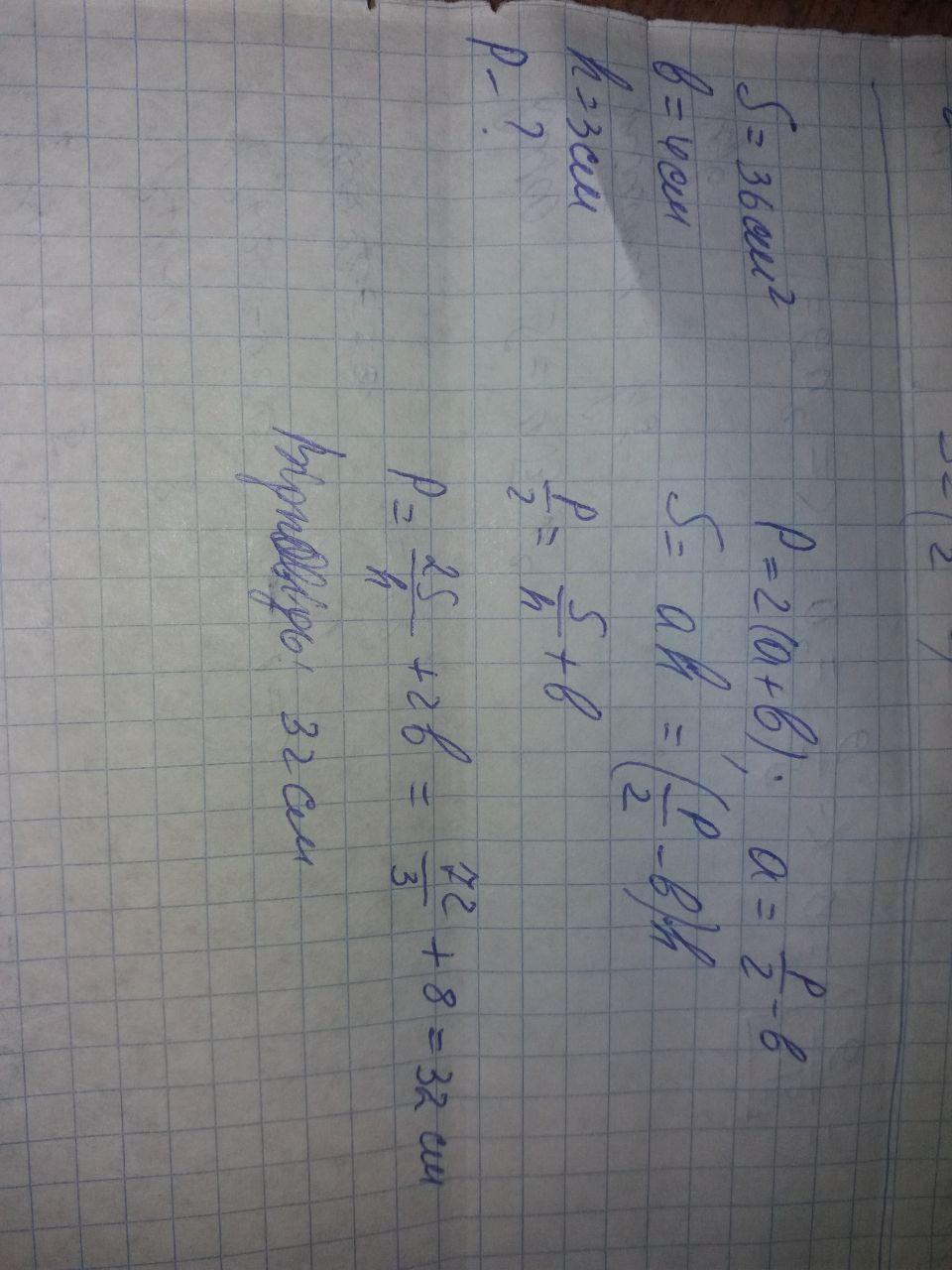 Площа паралелограма дорівнює 36 см², одна з його сторін - 4 см, а одна з висот - 3 см. Знайдіть периметр паралелограма